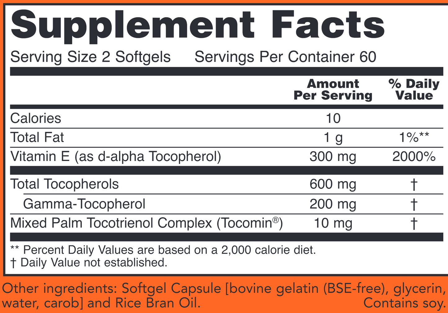 NOW® Advanced Gamma E Complex is a full-spectrum vitamin E supplement that features gamma-tocopherol and includes the right balance of tocopherols and tocotrienols. Gamma-tocopherol, the most abundant relative of vitamin E in the diet, is especially important due to its unique ability to detoxify and eliminate reactive nitrogen species, a particularly destructive form of free radical.* The vitamin E family of tocopherols and tocotrienols is well known for its role in the maintenance of cardiovascular health and normal immune system function.*
