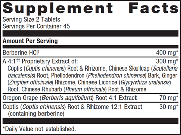 CandiBactin-BR features high quality extracts and crude herbs including berberine-containing plants that support healthy immune and detoxification function. Encourages a healthy intestinal environment and supports detoxification function of the liver and gallbladder. Promotes a balanced digestive tract. Features 400 mg per serving of berberine hydrochloride derived from berberis species, along with premium extracts of coptis and Indian barberry roots. Provides a proprietary extract of Chinese herbs that includes ginger, licorice, and rhubarb to harmonize the action of other herbs within the formula. CandiBatin-BR features standardized extracts and crude herbs including berberine-containing plants that support immune function and encourage the body to purge unwanted compounds.