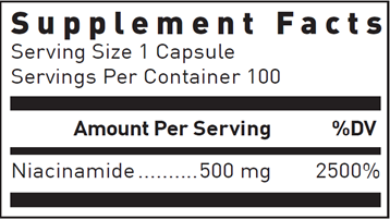 Niacinamide provides 500 mg of niacinamide per capsule. Dietary niacin can be obtained from niacinamide, an amide of niacin, which is typically well tolerated and not associated with causing a "flushing " reaction.