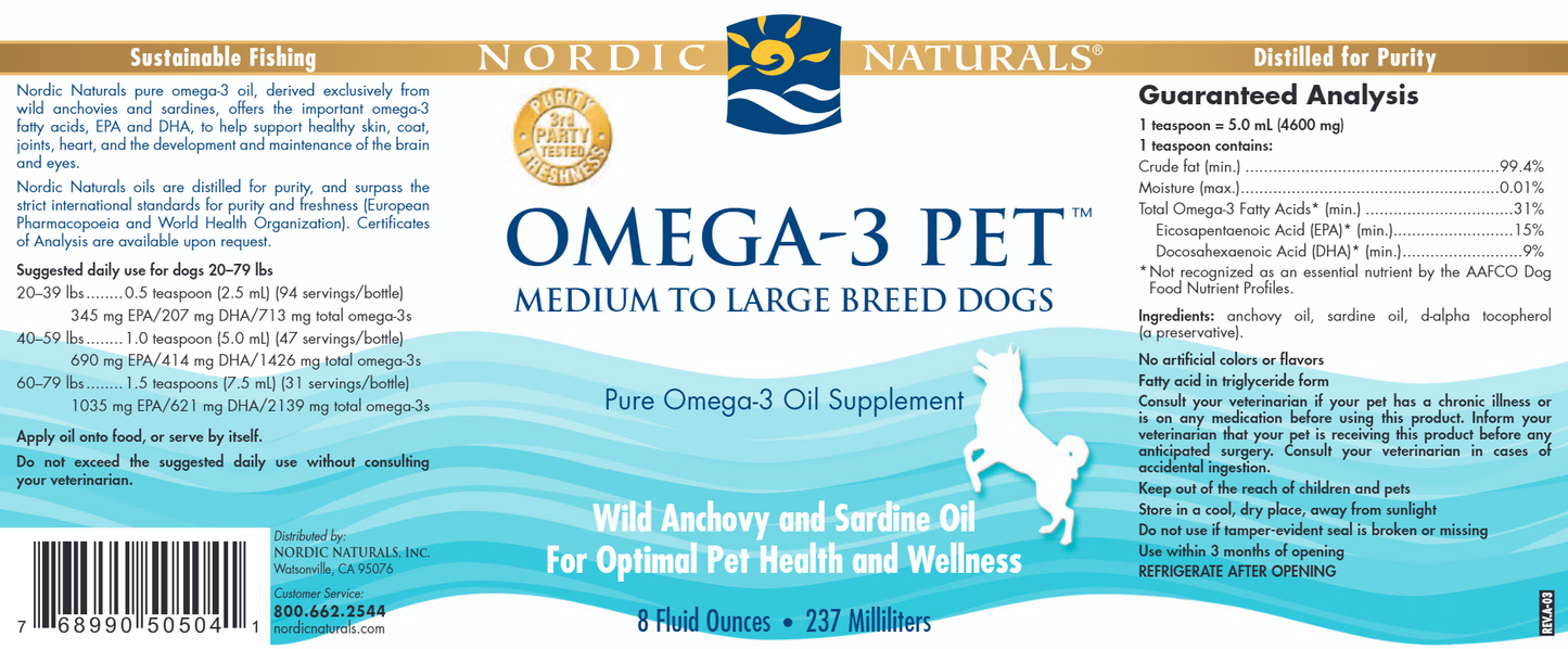 Nordic Naturals Omega-3 Pet™ Cats & Small Breeds product is also an excellent source of the omega-3 fatty acids EPA and DHA.