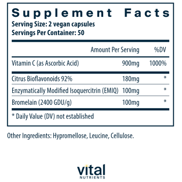 Aller-C’s combination formula also includes Vitamin C for immune support, Citrus Bioflavonoids to help maintain capillary stability, and Bromelain to promote heatlhy inflammatory balance.*